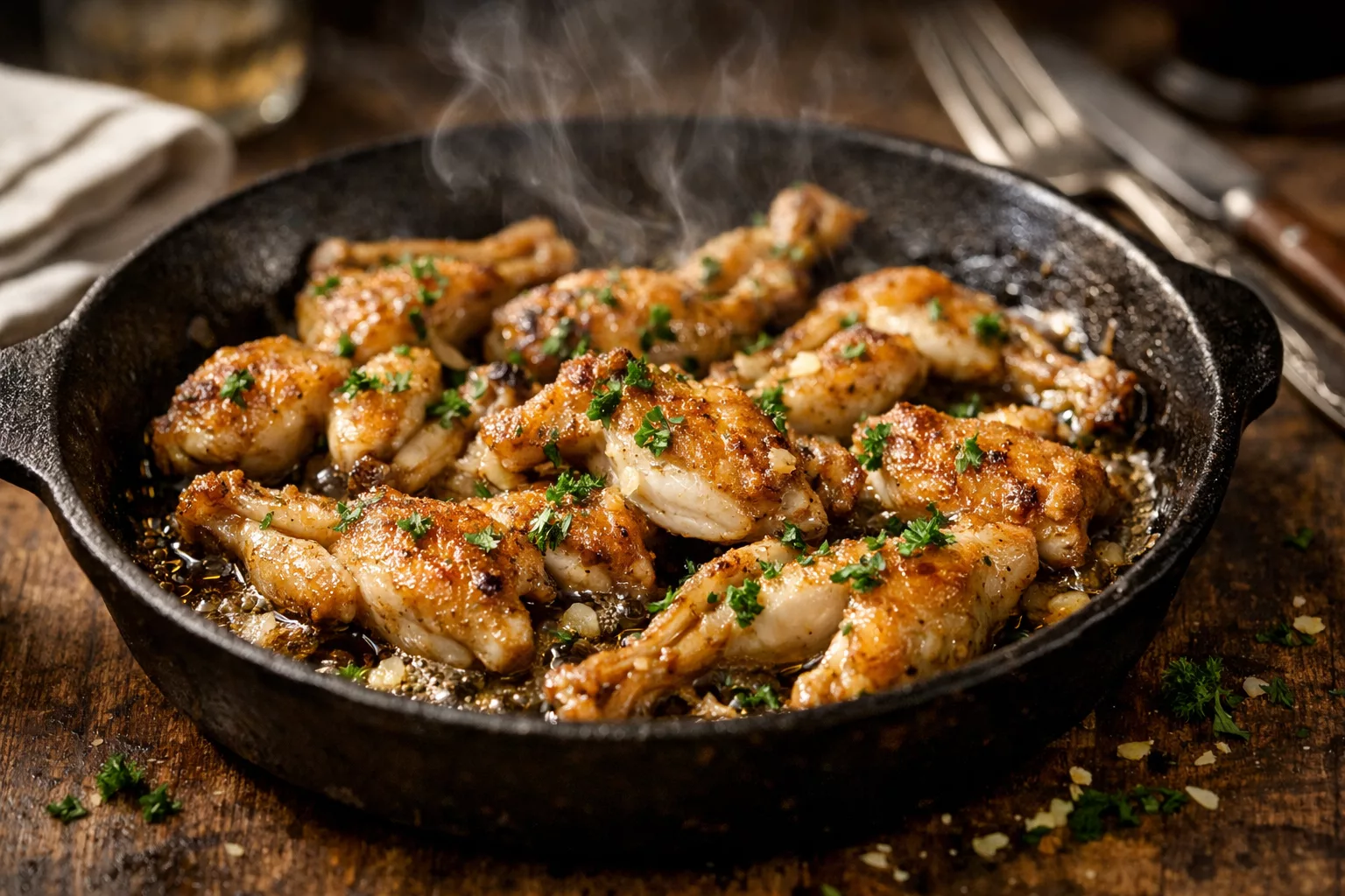 Les cuisses de grenouilles évoquent immédiatement les tables de bistrot, les nappes à carreaux et cette cuisine française intemporelle où la simplicité sublime le produit. À peine dorées, parfumées à l’ail et au persil, elles offrent une chair délicate, fine et légèrement sucrée, rappelant le poulet tout en étant plus tendre. C’est un plat qui impressionne sans être compliqué, souvent réservé aux grandes occasions, alors qu’il est en réalité rapide et accessible. Lorsqu’elles grésillent doucement dans le beurre chaud, une odeur irrésistible envahit la cuisine et promet un moment de pur plaisir. Servies bien chaudes, elles se dégustent avec les doigts, dans une ambiance conviviale et gourmande. Une recette emblématique qui mérite de reprendre sa place à la maison, même pour les cuisiniers débutants.