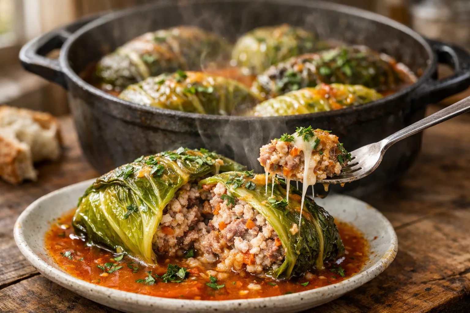 Le choux farci est de ces plats réconfortants qui évoquent instantanément les repas d’hiver, les cuisines chaleureuses et les parfums qui mijotent lentement pendant des heures. Lorsque le chou devient tendre et fondant, qu’il enveloppe une farce généreuse et parfumée, le résultat est tout simplement irrésistible. Ce grand classique de la cuisine familiale traverse les générations, souvent préparé le dimanche, lorsque le temps ralentit et que la maison s’emplit d’arômes gourmands. Entre la douceur du chou, la richesse de la viande et la profondeur du bouillon, chaque bouchée est un concentré de tradition et de plaisir. Facile à réaliser, même pour un débutant, cette recette vous guidera pas à pas pour réussir un choux farci savoureux, moelleux et parfaitement équilibré. Sortez votre cocotte, prenez le temps, et laissez la magie opérer doucement.