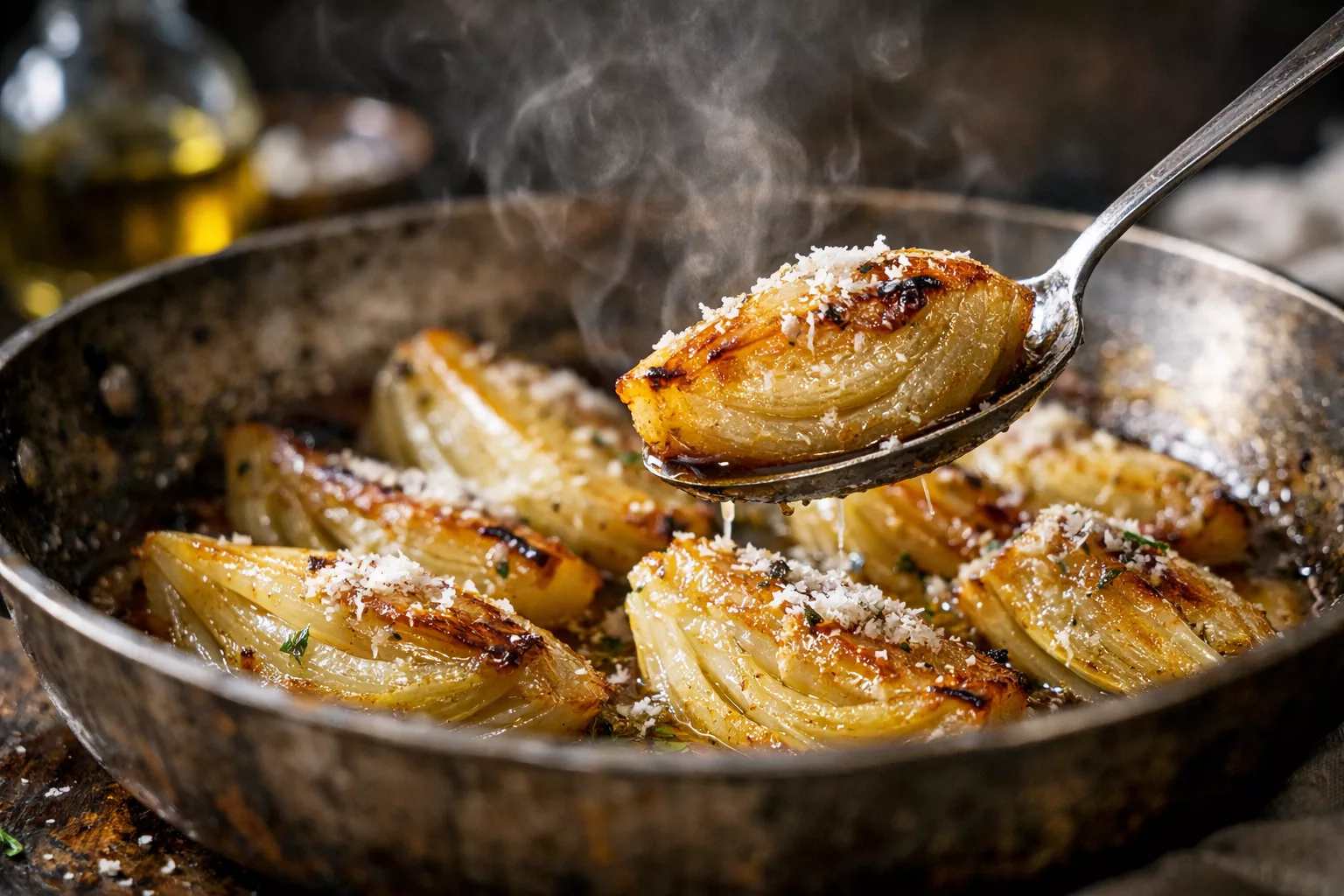 Le fenouil braisé est l’un de ces plats simples qui révèlent toute la magie de la cuisine douce et patiente. Lorsqu’il mijote lentement, ce légume souvent sous-estimé devient incroyablement tendre, presque fondant, et développe des arômes délicatement sucrés et anisés. Dans la poêle, les bulbes dorent doucement, libérant un parfum chaleureux qui rappelle les repas familiaux et les cuisines méditerranéennes baignées de soleil. À la dégustation, la texture est soyeuse, légèrement confite, avec une pointe de caramel naturel qui sublime chaque bouchée. Ce plat accompagne aussi bien une viande rôtie qu’un poisson grillé, mais peut aussi se savourer seul, simplement avec un bon morceau de pain. Facile à préparer, économique et élégant, le fenouil braisé est une recette parfaite pour redécouvrir ce légume sous son meilleur jour. Une fois goûté ainsi, il devient souvent un incontournable de la cuisine maison.