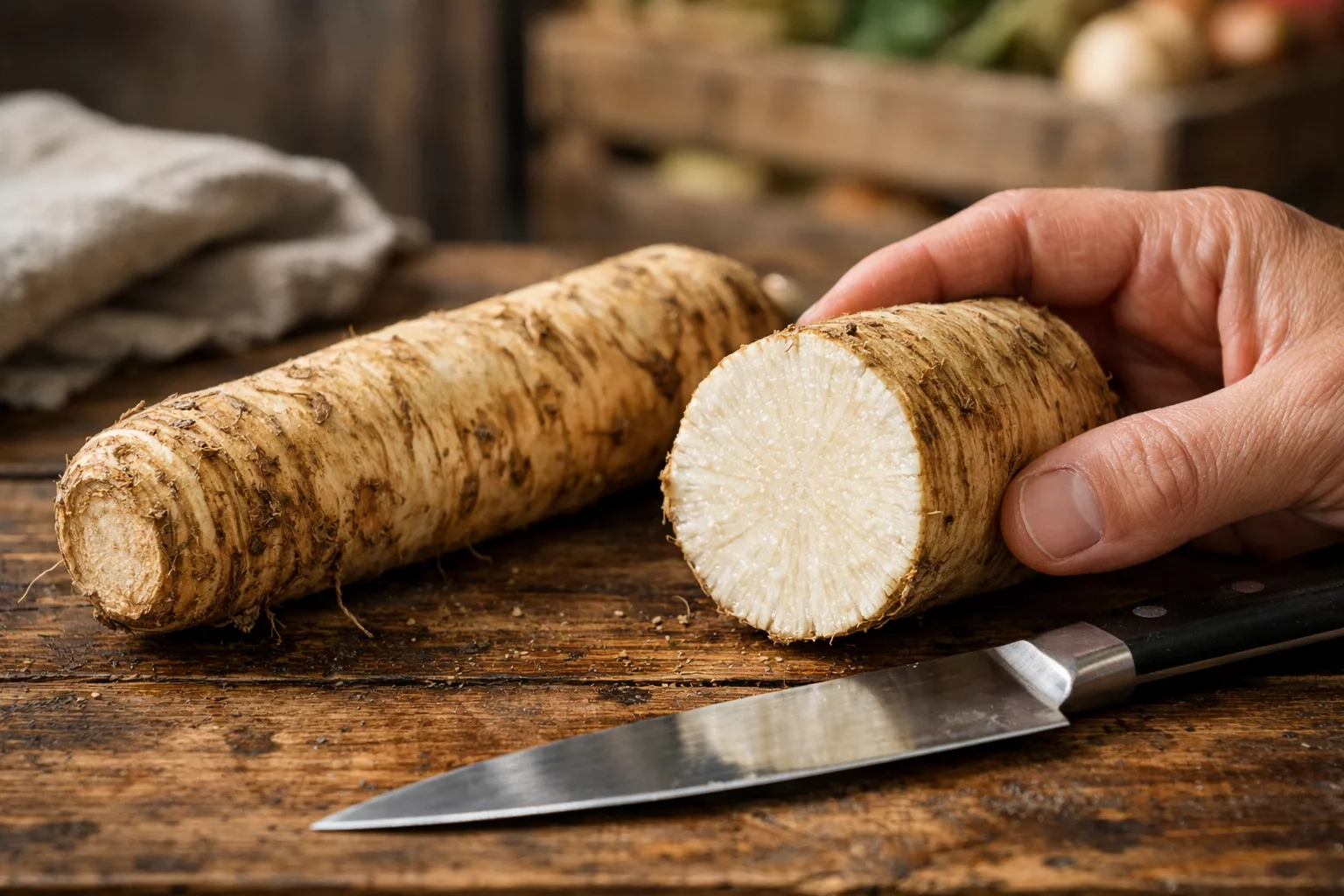 Le raifort frais connaît une saisonnalité plus marquée. La période de récolte principale s’étend d’octobre à mars. Entre avril et septembre, il devient plus difficile de trouver des racines fraîches chez les primeurs.