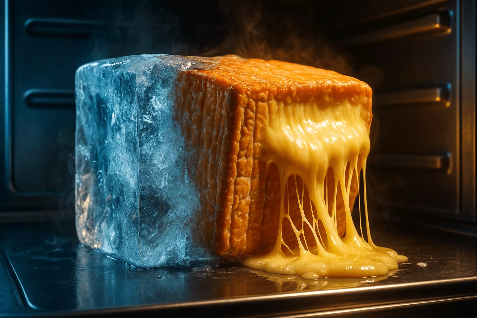Le fromage retrouve une consistance homogène sans zones dures résiduelles. Cette uniformité confirme une décongélation complète.