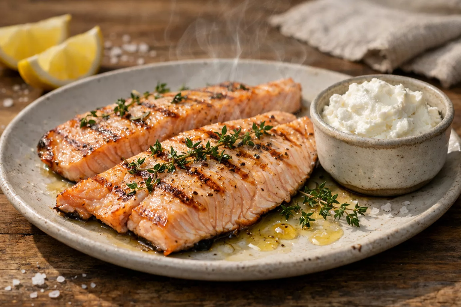Pour accompagner cette truite grillée, privilégiez un fromage frais et discret comme un fromage de chèvre frais ou une faisselle bien égouttée. Leur douceur respecte la finesse du poisson sans masquer ses arômes.